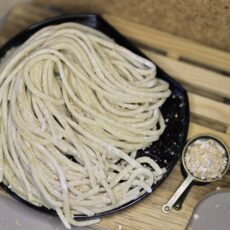 - Sau đó vớt ra rửa thật sạch với nước , để ráo rồi chế biến mì xào , mì trộn , mì khô